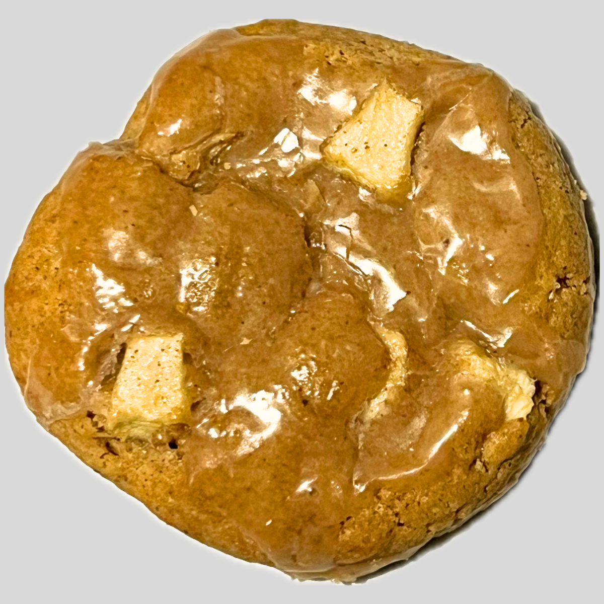 A spiced apple cookie topped with a light maple glaze.
