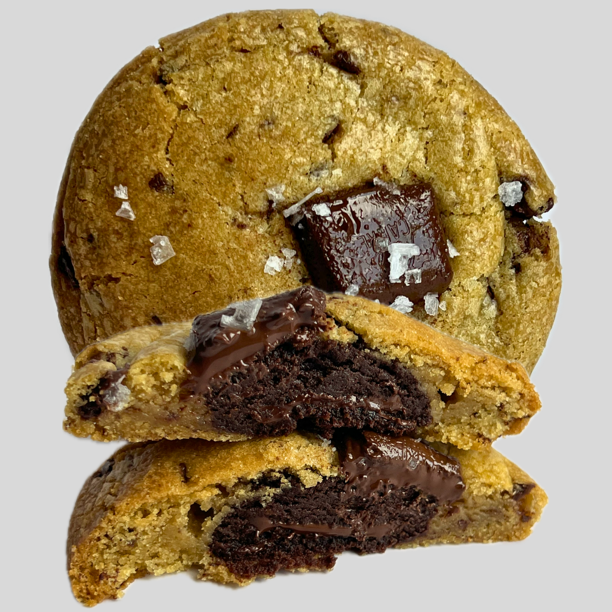 Milk chocolate stuffed with a rich double chocolate core and lightly sprinkled with sea salt flakes.